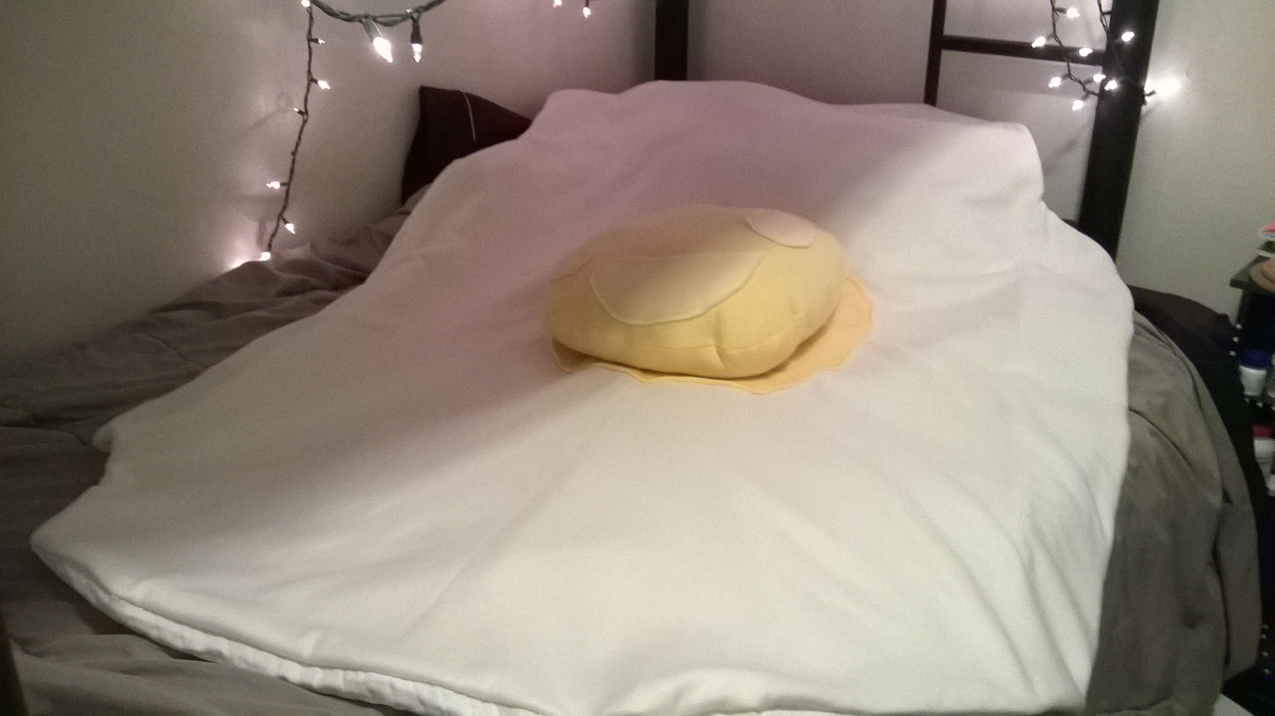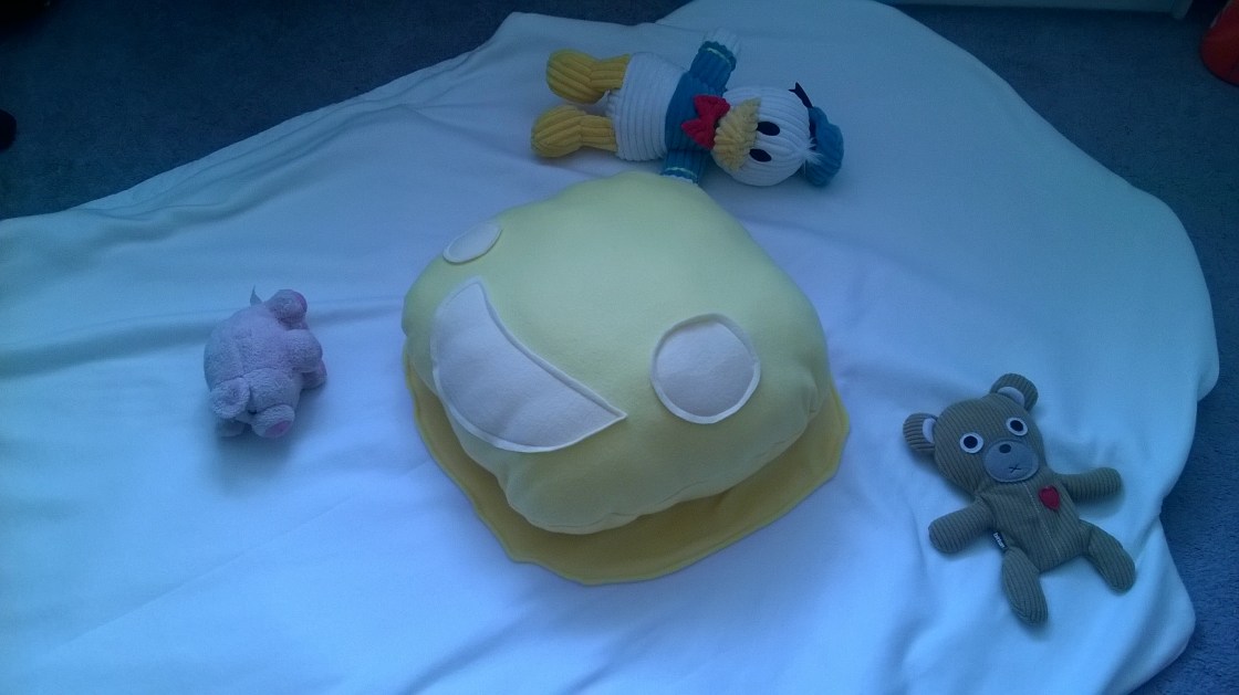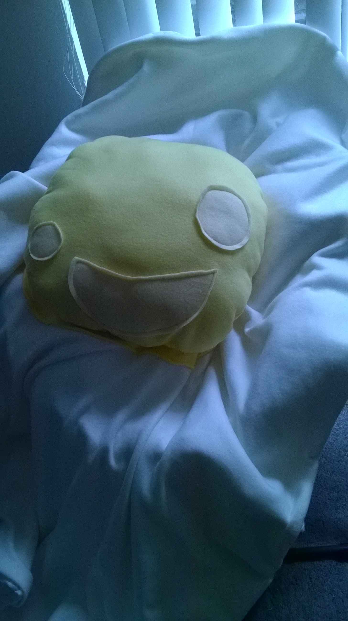 This is the very first product by #CreepyCrawlyCuddles (Find us on Facebook) 🙂 A sunny-side up egg blanket with a detachable yolk pillow! Creepy twist in the creepy face. Leave me comments below as to what you like or don’t like about it, whether you could love one as your own, or share it with someone you know would love it even more ❤