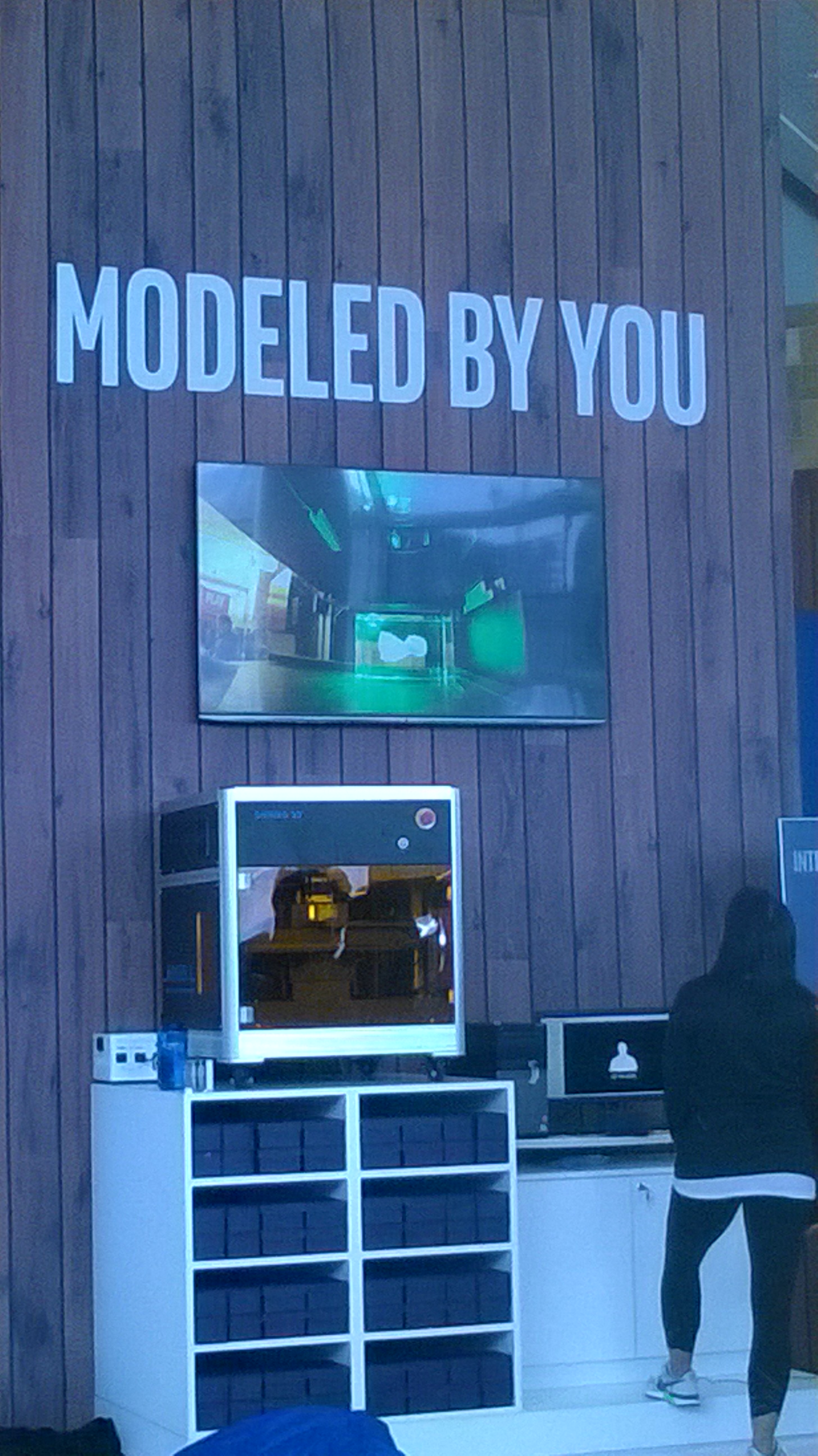 Estimated 3 hour wait to get a 3D print of you etched on a glass cube - Non-engaging exhibits. But there was food.