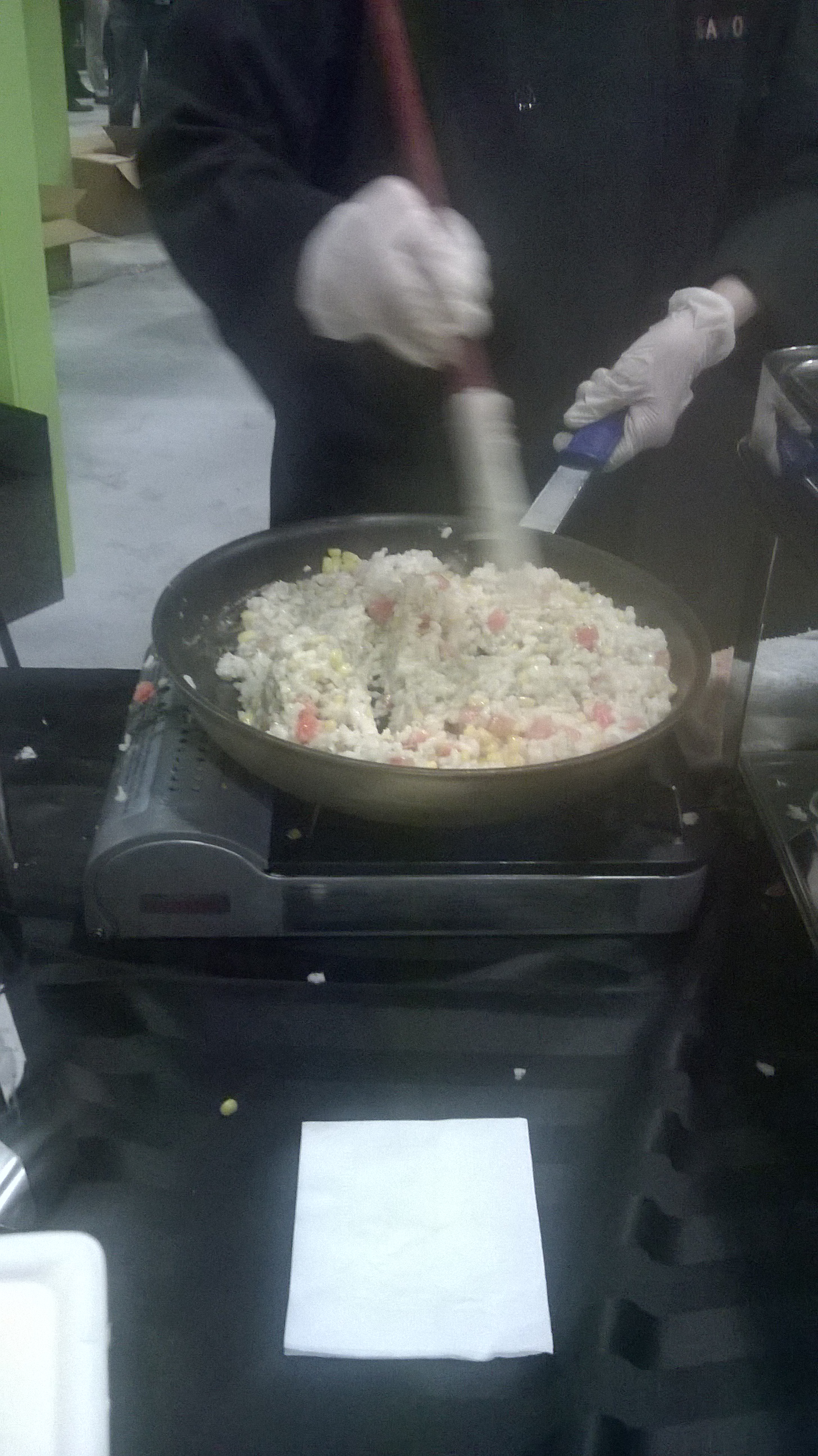 At some point of the day I found myself in the exhibition portion of the convention. The area where everyone is throwing swag (think pens, bags, T-shirts) and trying to sell a product that looks an awful lot like the product of the neighboring booth….at least to an untrained eye like my own. However, this area had food. There were wonderful caterers cooking up risotto and serving hors d’oeuvres. It was awesome.